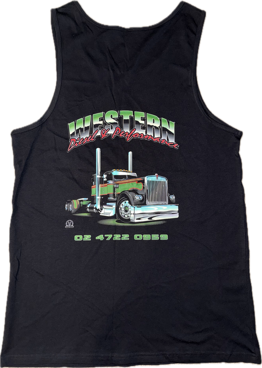 Western Diesel & Performance "Green" Singlet. Black Singlet with Western Diesel Logo on front. Big Print on back. Singlets are excellent qualit...