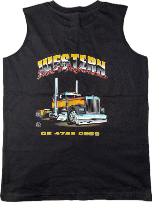 Western Diesel & Performance Youth / Kids Gold Singlet. Black Singlet with Western Diesel Logo on front. Big Print on back. Shirts are excellen...