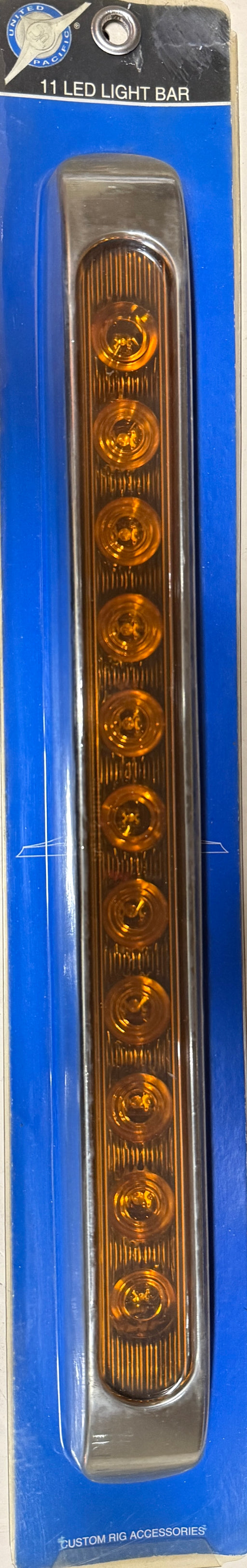 11 LED P/T/C Light Bar with Chrome Plastic Bezel. Amber LED with Amber Lens Mounting Holes Approximately 8 ½" Apart. Dimensions: 17 3/16"L x 1 ½"W ...