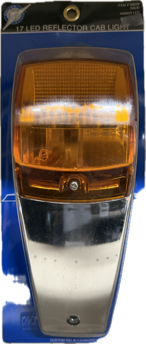 17 LED Square Cab Light with Reflector and Chrome Plastic Housing. 17 Amber LED with Clear Lens 2 Wires (Hard Wired) Dimensions: 10 11/16"L x 4"W ...