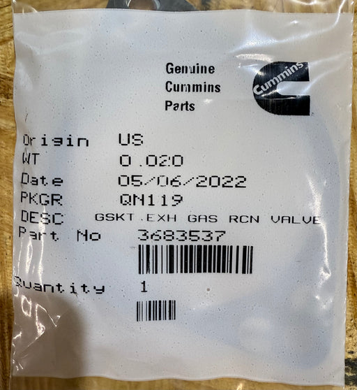Cummins Gasket EXH Gas RCN Valve 3683537 Cummins Gasket Part No: 3683537 All Prices are inclusive of GST.