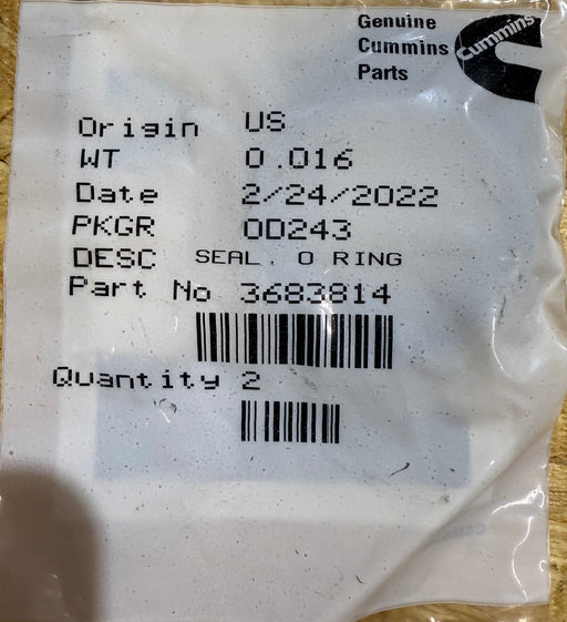 Cummins Seal O Ring 3683814 Cummins Seal O Ring. Water Transfer Tube from Water Pump EGR. Part No: 3683814 All Prices are inclusive of GST.