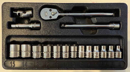 Caterpillar 17 Piece Metric Ratchet Set 1/4" Drive 233-1642 6 Point. Size: 4mm - 15mm. Socket Contacts the fastener on the flats rather than on the...