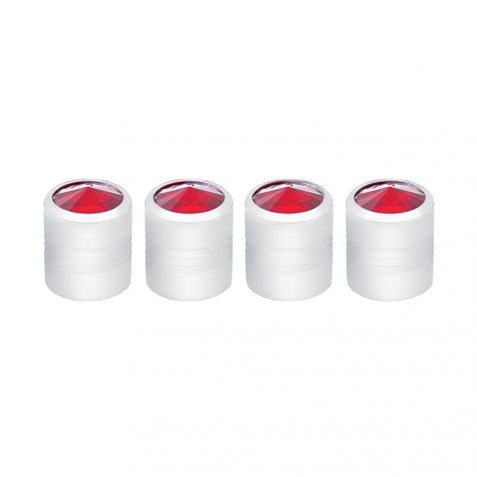 Diamond Valve Caps in Red. Chrome Plated Light Weight Aluminium Body with Swarovski Diamond. 4 Pieces per pack. All Prices are inclusive of GST.