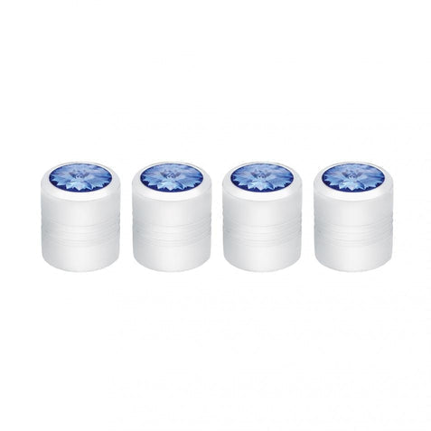 Diamond Valve Caps in Blue Chrome Plated Light Weight Aluminium Body with ""Swarovski"" Diamond. 4 Pieces per pack. All Prices are inclusive of GST.