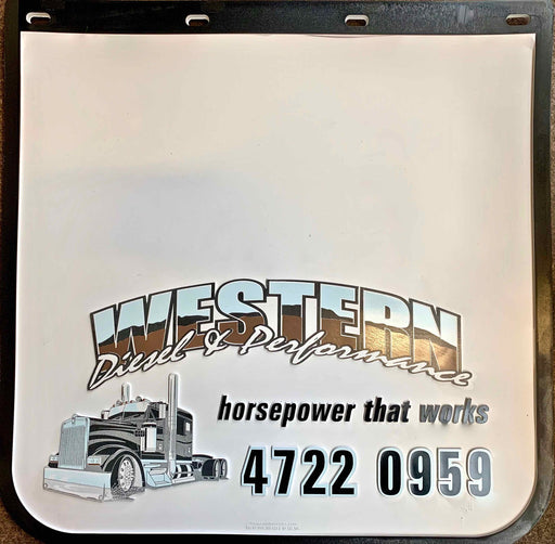 Western Diesel & Performance Mudflaps. Size: Width: 60cm Height: 60cm Thickness: 1cm All Prices are inclusive of GST.