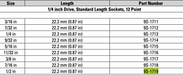 Size: ½ inch. Length: 22.2 mm (0.87 inches)